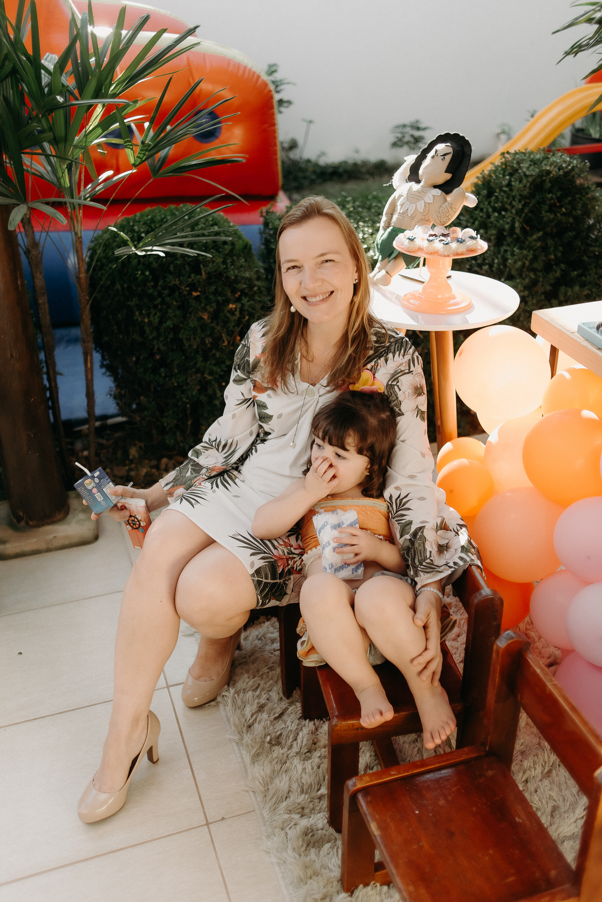 No início da festa a Ana Carolina (03 anos) estava com um pouquinho sono e bem quietinha, já a Maria Clara estava muito contente e transmitindo alegria pela festinha.