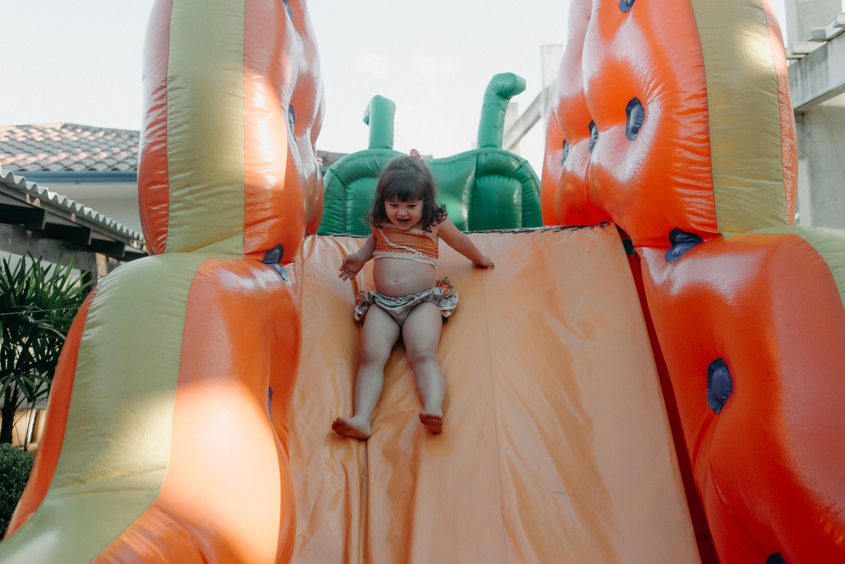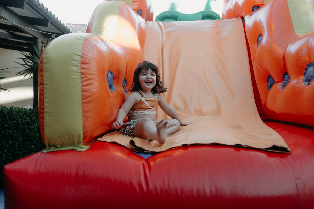 Levou alguns minutos até a Ana entender tudo aquilo e começar a se divertir, mas depois que começou a pular e brincar, não parou mais.