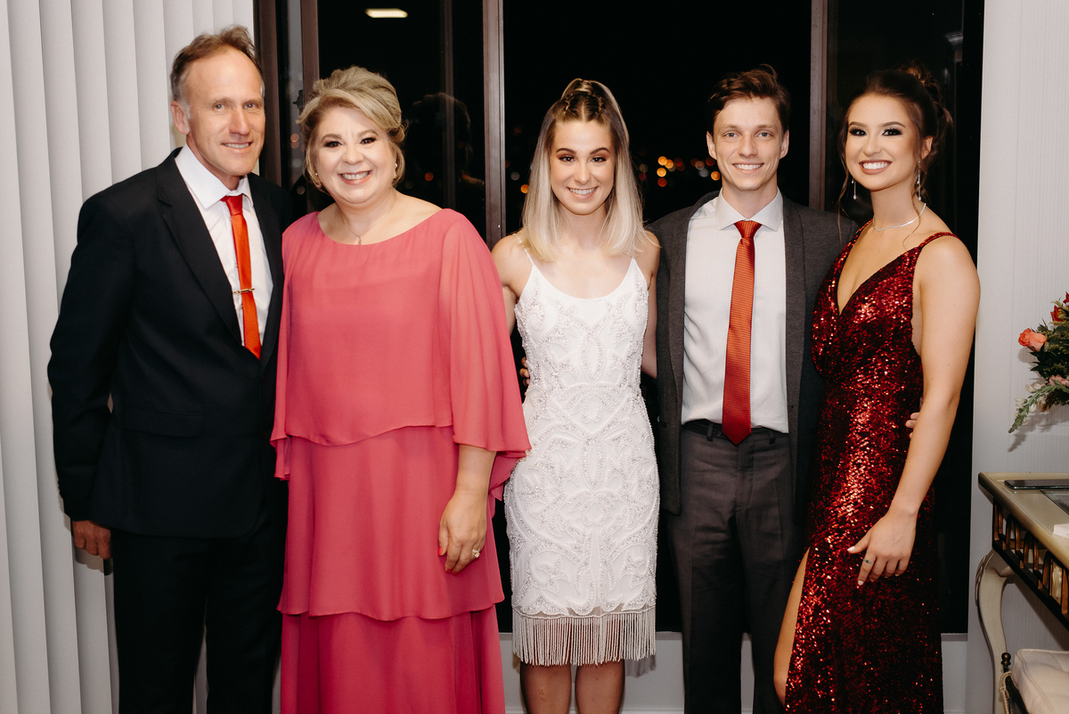 Fotografei cada membro da família com sua roupa de festa.